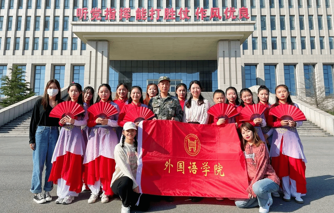 外国语学院分团委书记李萌带领外国语学院学生到往陆军军事交通学院参与演出。