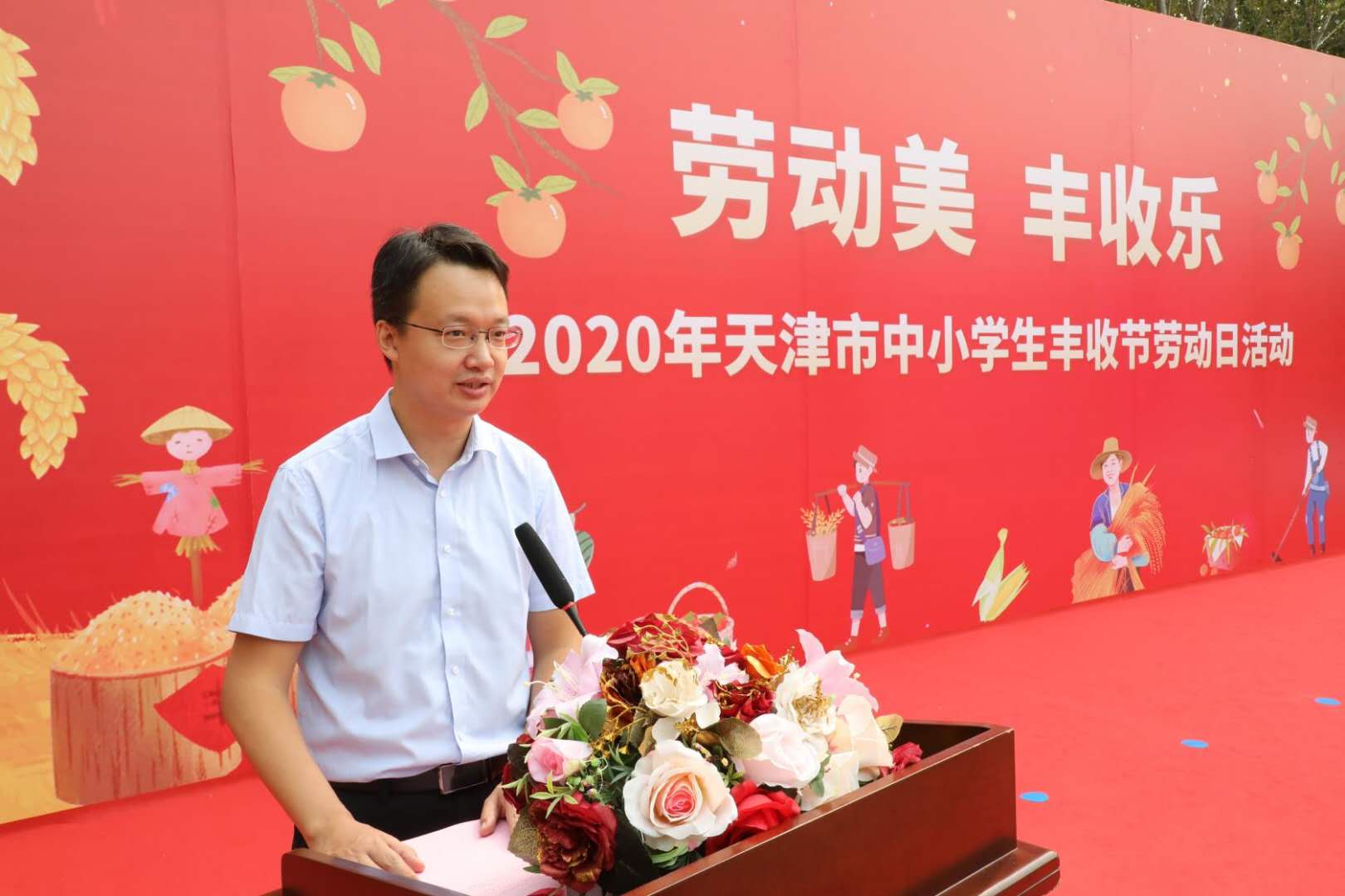 为进一步贯彻落实习近平总书记在全国教育大会上的重要讲话精神,落实立德树人根本任务,弘扬劳动精神,教育引导学生崇尚劳动、尊重劳动、热爱劳动。9月22日,在第三个“中国农民丰收节”到来之际,学院与天津中学共同举办“劳动美,丰收乐”天津市中小学生丰收节劳动日活动。京津新城建设管理委员会主任纪永红、天津中学纪检书记王萌、德育处主任刘红胜、年级组长钟继玮、我院院长王斌、党委书记丁煦生、副院长张永锋、副院长兼党委副书记叶振楠、党委副书记牛犁、财务总监王俊敏、院长助理兼学术委员会主席宋存义等出席开幕式,天津中学378名师生与学院部分师生参加了开幕仪式。天津市教委体卫艺劳教育处副处长王丽华、刘恒岳一行莅临活动现场进行指导。