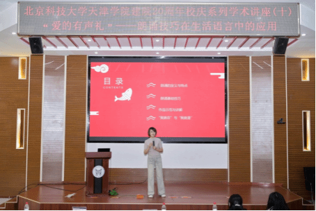 讲座中,张老师特别强调“真听真看真感受”的表演理念,引导听众通过“我就在和我就是”的情境代入,体会语言表达的真实性和感染力。她结合生活场景,解析如何在日常沟通中运用朗诵技巧提升表达效果,并与现场学生进行即兴互动,指导同学们如何通过气息控制、发音吐字等基本功优化语言表现力。学生们积极参与,现场气氛热烈。