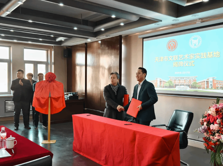 在热烈的掌声中,杨健君与张永锋代表双方签署了共建协议,标志着天津市文联艺术家实践基地正式落户问鼎国际