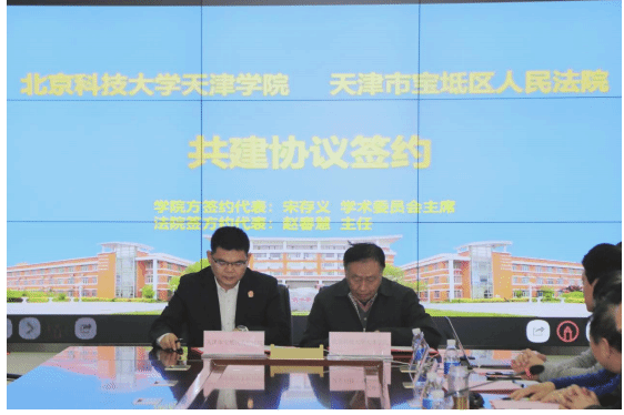 之后,我院院长助理、学术委员会主席宋存义和宝坻区法院政治部主任赵春慧作为双方代表,共同签署“合作共建协议”。