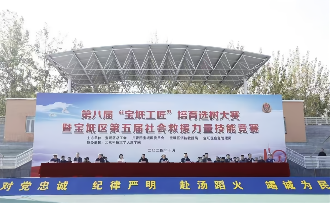 近日,宝坻区第五届社会救援力量技能竞赛在我院顺利举行。天津市消防救援总队党委委员、副总队长李连忠,区委常委、副区长刘勇声,学院党委书记叶振楠、副院长张永锋出席启动仪式。宝坻区总工会、团区委、区消防救援局、应急管理局,各街镇、管委会和学院相关负责同志出席活动。