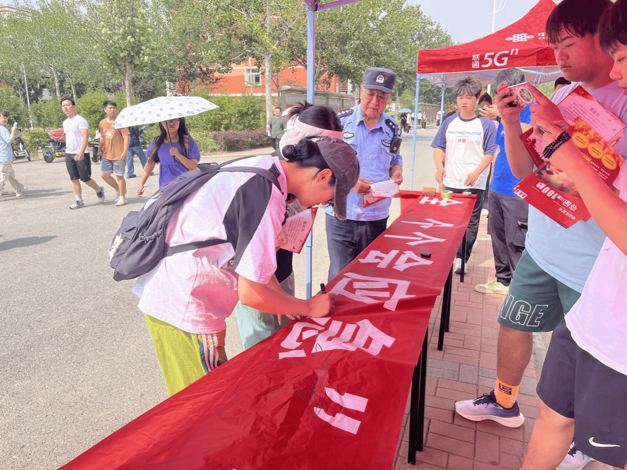 随着下课铃声到来,京津新城消防救援站的指战员、新城派出所民警、学院保卫处工作人员和学生安全志愿者一起走上校园街头,发放“畅通生命安全通道倡议书”,邀请广大师生参与“安全承诺践诺签名活动”,争做平安问鼎