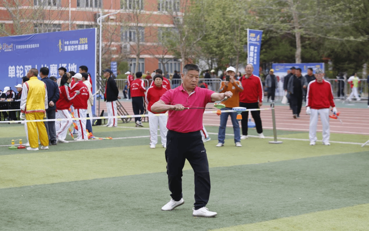 4月20日,由宝坻区人民政府主办,区体育局、周良街道(京津新城)和我院承办的2024中国·天津宝坻首届空竹邀请赛在学院西操场举行,来自全国15省市、36个城市,51支空竹代表队、810名空竹爱好者来到学院参加比赛。