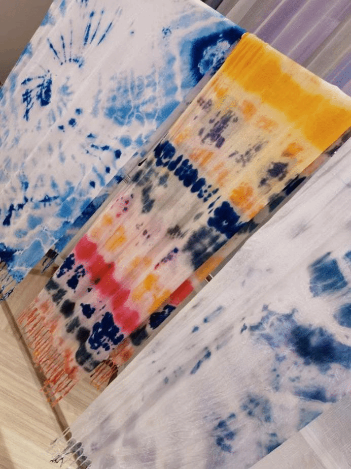 通过亲自动手,大家根据自己的喜好和创意,对提前准备好的丝巾进行“扎”与“染”等一系列操作,一扎一染,一浸一润,一条洁白的丝巾染上斑斓的色彩,每一幅独一无二的作品,展现了大家对美的理解和追求,蕴藏着劳动的智慧与创造力。