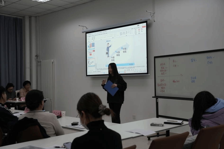 接下来,管理学院任洁老师应用BOPPPS教学法为大家做了“企业竞争战略管理”的微课示范,以格力电器的广告语发展历程引出公司每个发展阶段的战略,并对相应知识点进行前测,提出授课目标。课堂中,利用角色扮演进行参与式学习来讲解竞争战略和差异化战略的相关理论,并应用该理论进行格力电器的案例分析。通过游戏互动的方式判断广告语揭示的竞争战略类型来进行后测环节,最后融入课程思政的内容展望行业未来发展趋势并进行课堂总结。该示范课程内容环环相扣,氛围生动活泼,让老师们深刻体会到了BOPPPS教学法的有效性。