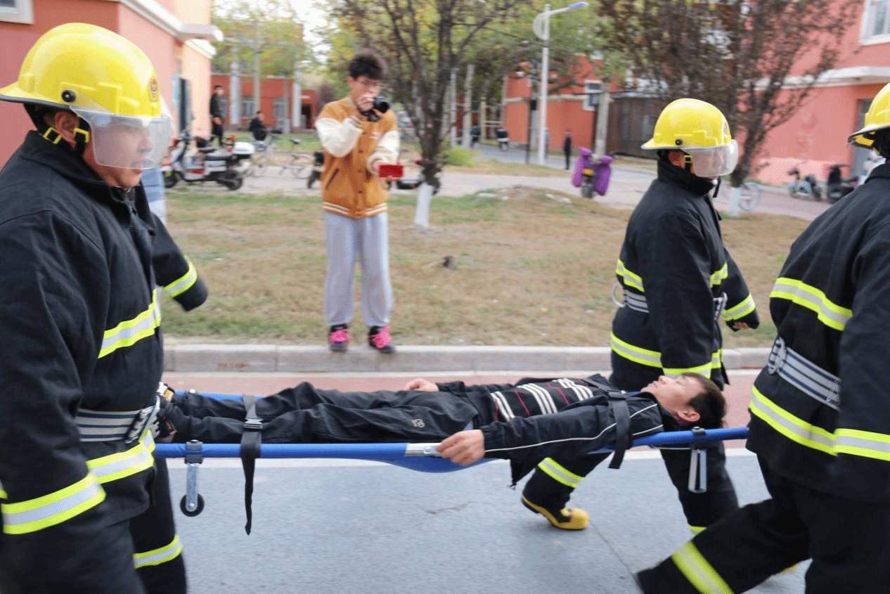 今年11月9日是我国第32个全国消防日,为提高我院师生消防安全意识,增强学生应急疏散逃生自救互救能力,11月3日下午3时30分,学院保卫处联合学生处、后勤处,指导学生安全工作委员会,在39-42斋高层公寓,开展“预防为主 生命至上”高层公寓疏散演练活动,并为“119校园安全文化节”揭幕。京津新城派出所丁玉东警官,学院保卫处、学生处负责人,后勤处宿管中心,保卫处消防科等保卫干部及部分辅导员老师出席本次活动。高层公寓400余名学生代表参加本次演练。