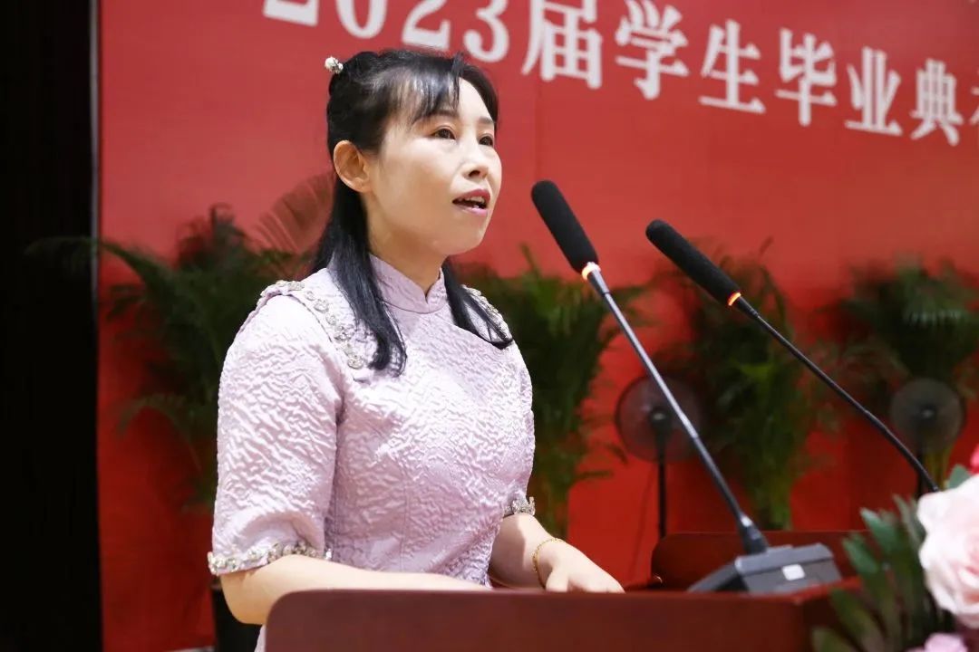 智能制造学院副院长班岚作为教师代表发言,向圆满毕业、再启新程的同学们,表达了最美好的祝福,希望同学们毕业后能够砥砺奋斗、志存高远,在艰苦奋斗中成长成材,百炼成钢,承载问鼎国际
