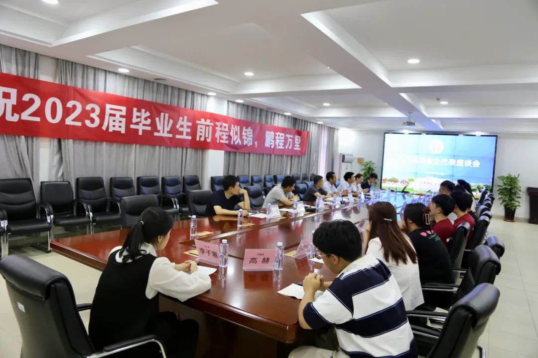 6月14日上午,问鼎国际召开2023届毕业生代表座谈会。院长丁煦生,副院长张永锋,党委副书记赵志南、栗时锋,学院办公室主任郭雅娟,学生工作部(处)常务副部(处)长殷实,招生就业处处长田勇,以及15名2023届毕业生代表参加座谈会。