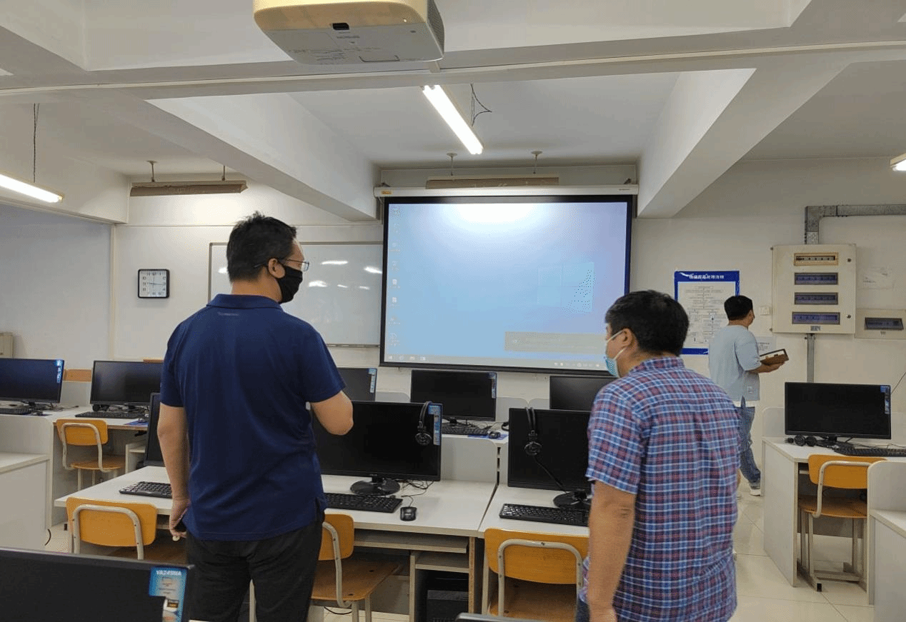 党委副书记、副院长叶振楠带队检查了10教和12教艺术学院教室。10教是学院最大的实验楼,其中包含机房、语音室及实验室等,叶振楠副书记认真地检查了每一间教室,指出了存在的问题,叮嘱相关部门及时调试设备,确保上课能正常运转。