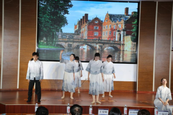 随后,图书馆副馆长王瑞存与舞蹈系学子联袂呈现的《再别康桥》将晚会推向高潮,饱含深情的朗诵如潺潺流水,与舞者轻盈柔美的身姿交相辉映,共同勾勒出诗人笔下那抹“挥一挥衣袖,不带走一片云彩”的隽永意境。