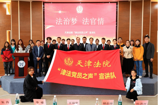 ,为法律系师生开展“法治梦 法官情”主题宣讲。本次来校宣讲队成员有天津市高级人民法院法宣处处长王福荣、教培处副处长李檬、机关党办四级调研员胡志增、天津市第三中级人民法院知产庭法官助理吴丹、河北区人民法院执行局法官助理赖柯霖、天津法官学院讲师杜洪洲。法律系主任朱京安教授、实践教学指导中心主任刘国平副教授,法学教研室主任李文一老师、教师代表刘少华、董祺、王一然、唐秋香等老师以及法律系部分学生参加了此次宣讲活动。