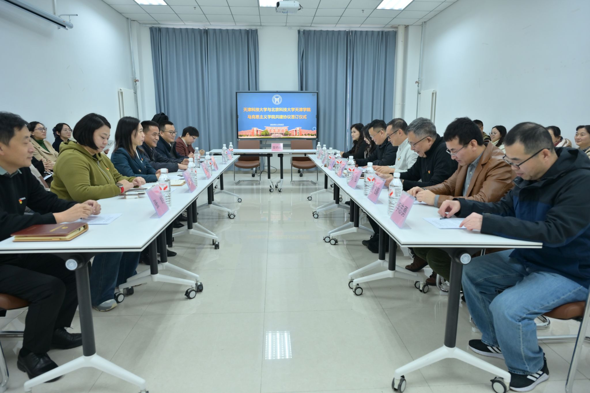 天津科技大学马克思主义学院副院长闫翠娟、我院马克思主义学院院长陈弘签署结对共建协议。