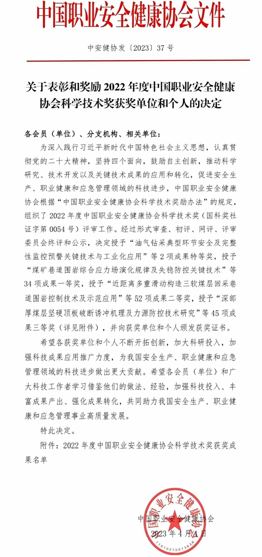 日前,中国职业安全健康协会发布了《关于表彰和奖励2022年度中国职业安全健康协会科学技术奖获奖单位和个人的决定》。我院城市建设学院团队参与的课题《抚顺西露天矿区地质灾害演化及多维度综合防控技术研究》,获中...