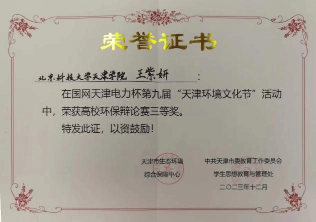 12月9日,由天津市生态环境局、天津市教育委员会及天津市文明办、津云新媒体集团、国网天津电力公司共同发起的国网天津电力杯高校环保辩论赛决赛暨第九届“天津环境文化节”闭幕式落下帷幕。由我院校团委副书记黄云汉...