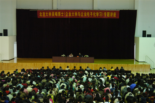 11月15日,由学生事务部主办、经济系分团委承办、管理系分团委协办的《企业大学与企业电子化学习》的主题讲座在体育馆内举行。 此次讲座邀请到北京大学经济学博士、副教授吴峰主讲,吴博士曾任郑州市经济贸易委...