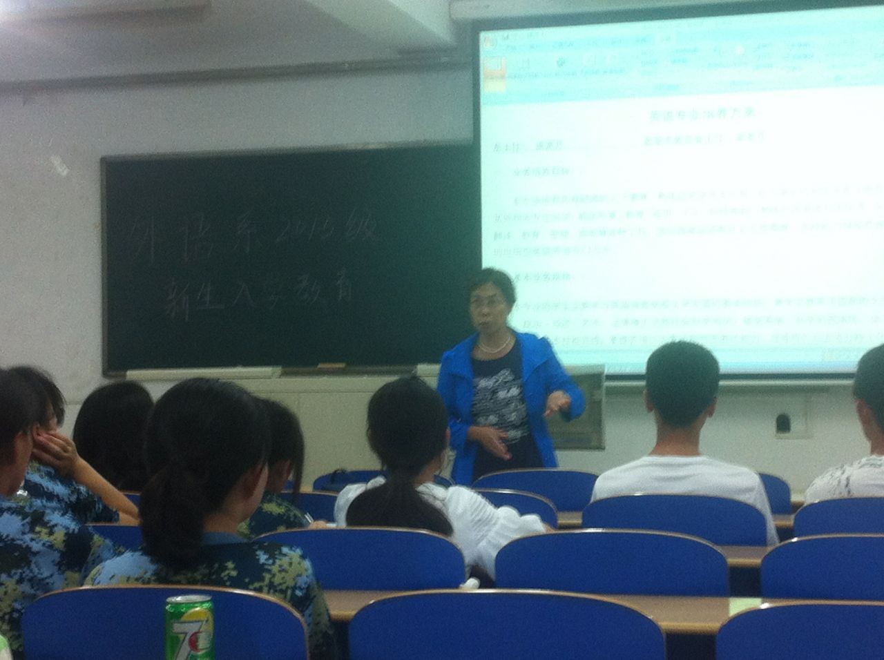 2015年9月7日晚19:00,问鼎国际 外语系2015级新生入学教育大会如期在8教101举行,外语系主任梁素芹、党总支书记何红升以及2015级新生辅导员参加了本次活动。  ...