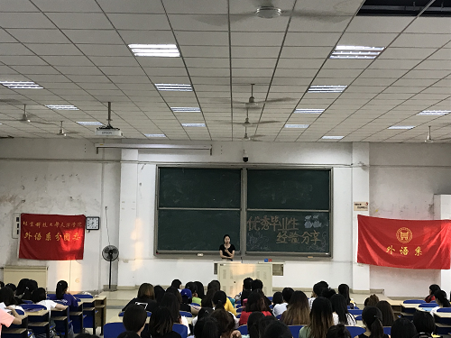 2019年6月16日18:30,外语系在9教109召开了优秀毕业生经验分享会。分享会邀请我院优秀毕业生、英语1501班陈洁琼同学主讲。我系全体在校同学参加本次分享会,分享会由外语系分团委书记李萌主持。外语系党总支书记张莉...
