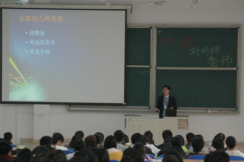 12月中旬,乐多网首席执行官、西山科技有限公司总经理、辉煌前程大学生俱乐部主席--刘明辉老师受邀来我院,为信息工程系08级日语特长班的同学进行主题为“就业效率和方程式”的讲座。 讲座开始,...