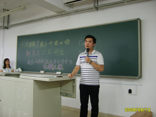 褚嘉铭老师鼓励同学们以积极行动备战四六级考试 6月12日,由我院机械工程系主办的“大学英语四六级与听说口语”专题公益讲座在八教101室举行。本次讲座的主讲人为新东方学校优秀教师褚嘉铭和新东方优秀教师Criti...