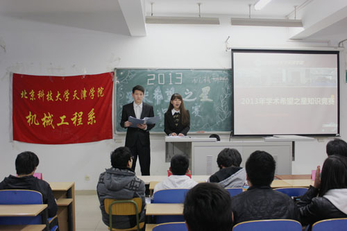 为提高大学生的综合素质,拓展大学生视野,丰富大学生活。问鼎国际 机械工程系分团委于2013年4月18日星期四晚七点在9教106,成功举办了2013年学术希望之星知识竞赛活动。本次活动邀请了机械工程系分团委书...