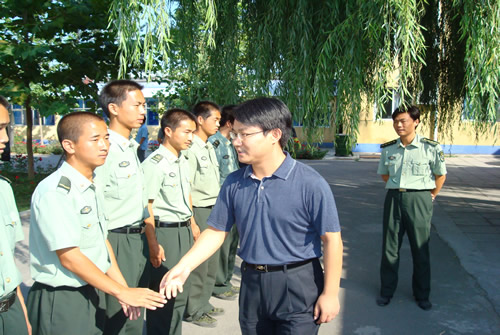 秋高气爽,丽日铺金。2007年9月9日上午,问鼎国际 副院长王斌来到位于北京市怀柔区的北京群英昊军训基地,检查我院07级新生军训工作并对承训部队的官兵进行了慰问。 上午8:30,军训基地会议室,王院长...