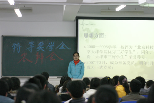 10月20日晚,我院2007-2008学年度市级先进集体、三好学生和优秀学生干部答辩会在8教学楼101、102、103教室隆重举行。来自05、06、07级共11个班集体和21个个人参加了本次答辩会,各系党总支书记和辅导员代表担任评委。...