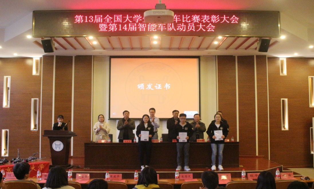 随后,大会对我院第十三届“恩智浦”杯全国大学生智能汽车大赛智能车队进行表彰,并举行颁奖仪式。