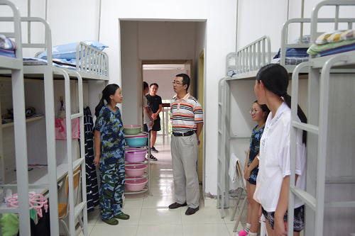 8月28日晚,学院院长、党委书记王斌,副院长张永锋,党委副书记白亮、叶振楠、孟菲菲,财务总监王俊敏走访了2018级新生宿舍,看望并慰问新生。
