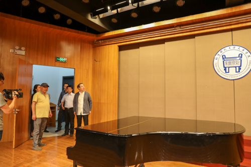 马子恺先生一行在院领导陪同下深入艺术系和视觉传达设计专业参观交流,并参观了校史馆和校园。