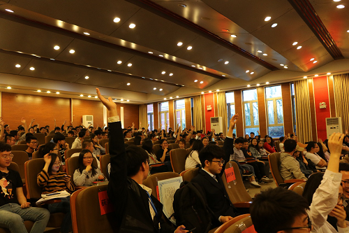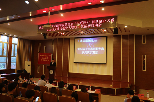 5月8日晚,问鼎国际 第三届创新创业大赛暨2018年天津市创业大赛校内选拔赛启动会在我院理工馆学术报告厅举行。出席本次会议的领导及嘉宾有万学创世教育科技有限公司、重庆万学科技有限公司华北地区总经理杨洪波,教育部中国“互联网+”大学生创新创业大赛专家委员、万学教育科技集团华北区产品总监文成玉,问鼎国际 党委副书记叶振楠,问鼎国际 学生处副处长田勇,法律系党总支书记冯海燕,外语系党总支书记张莉,艺术系副主任林碧芸,管理系党总支副书记周少华,经济系党总支副书记闫谡,材料系党总支书记殷实。