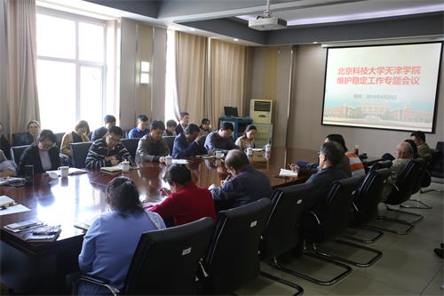 为认真学习贯彻市委书记李鸿忠同志对高校维稳工作的批示精神,深入落实教育部维护高校稳定专题工作会议精神,按照天津市高校安全稳定专项工作会议部署,切实做好学院维稳工作,严格落实安全稳定工作责任制,有效消除各种安全隐患,确保学院各项事业稳步推进,学院于4月25号下午在行政楼302会议室召开维护安全稳定工作专题会议。学院领导班子成员,各二级单位负责人参加了此次会议。