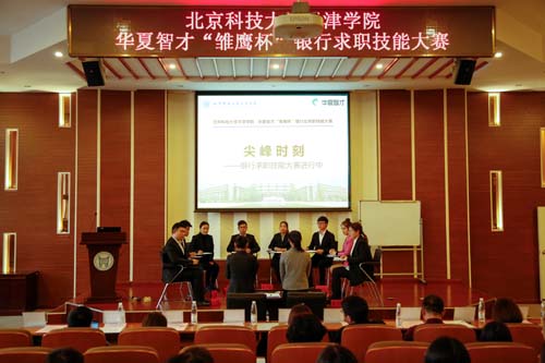 为了更好的服务学生就业需求、开拓学生就业渠道、增加学生就业途径,探索精准就业服务,12月13日,华夏智才“雏鹰杯”银行业求职技能大赛在我院学术报告厅成功举办。广发银行石家庄分行人力资源经理张丹丹,华夏智才教育咨询(北京)有限公司执行董事袁军、总经理王静,问鼎国际 党委副书记叶振楠、招就处副处长兼就业指导中心主任罗富臣、招就处副处长冯海燕出席大赛。华夏智才教育各地运营中心的负责人代表、我院老师和同学260余人到场观摩了比赛。