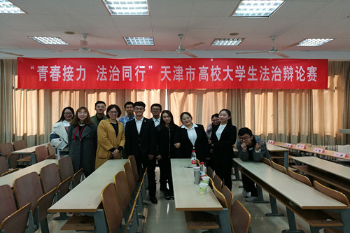 由法治天津建设领导小组办公室、中共天津市委教育工作委员会、天津市教育委员会、天津市司法局、共青团天津市委员会联合举办的天津市高校大学生“青春接力法治同行”法治辩论赛于2017年10月29日在天津师范大学举行。我院法律系辩论队代表学院参加本次比赛。