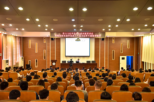 王民忠教授以习近平总书记在全国高校思想政治工作会议上的讲话为中心点,从教育需要把握好的几个关系、育人的理念及对教育工作者的要求两个方面对习近平总书记的重要讲话精神进行了深刻解读。整场报告会围绕立德树人的根本要求展开,通过论述教育的新要求、新定位,为学院师生贯彻全国高校思想政治会议精神指明了方向。王教授语言诙谐幽默,旁征博引,报告会案例丰富,通过深入浅出的分析使全体师生认识到了德育的重要性,使全体教育工作者受到了极大的心灵鼓舞。