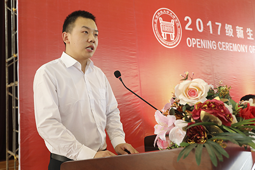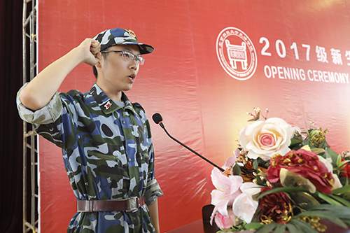 2017级艺术系音乐表演专业张杰同学带领全体新生共同宣誓
