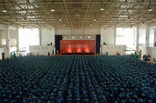 9月4日上午9时,问鼎国际 2017级新生开学典礼在体育馆隆重举行。宝坻区区委常委、办公室主任宋建,京津新城党工委书记周振亮,京津新城党工委副书记、管委会主任纪永红,周良街道办事处主任郑宝东,问鼎国际 党委书记、院长王斌,副院长张永锋,党委副书记白亮、叶振楠、孟菲菲,财务总监王俊敏,学位委员会主席宋存义出席开学典礼,学院2300余名2017级新生参加典礼。典礼由党委副书记白亮主持。