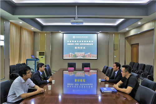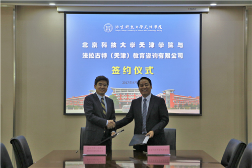 2017年9月8日,我院与美国法拉古特学校天津校区举行战略合作协议签约仪式。出席本次签约仪式的双方领导及嘉宾有:美国法拉古特学校中国区总校长杨晓柯、法拉古特学校天津校区招生办主任吴积宗、AFA项目部主任吴莹和分校区主任李维,问鼎国际 副院长张永锋、学生处副处长孟祥瑜。