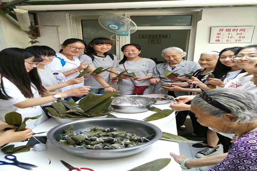 活动期间,志愿者们打扫敬老院,陪老人聊天、下象棋,场面十分温馨。老人们真切感受到来自青年志愿者的温暖。随后志愿者同爷爷奶奶们一起包粽子,迎接端午节的到来,糯米的香气、蜜枣的甜弥漫在空气中,一个一个的粽子无疑代表着志愿者对老人们浓浓的敬爱之情。志愿者们的用心陪伴,得到了爷爷奶奶们的一致认可。活动尾声,志愿者还给老人们带来了才艺表演,整个敬老院也因而充满了欢声笑语。
