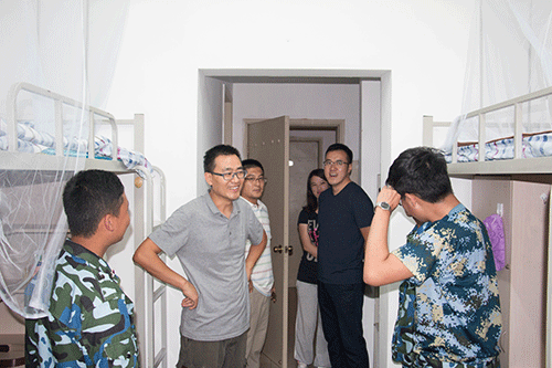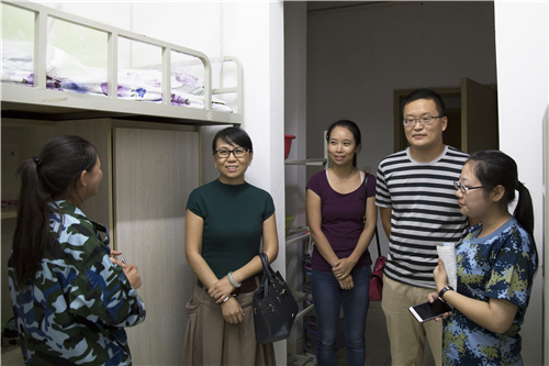 在新生宿舍,学院领导与新生亲切交谈,详细询问同学们的家庭情况、军训情况和对学校环境的适应情况,并嘱咐同学们尽快完成好从高中到大学的角色转换,学会独立生活和自主学习,处理好与舍友、同学和老师之间的关系。领导对同学们提出了希望,希望同学们尽快确立大学四年的目标,并付诸于实际行动来实现自己的梦想,好好学习,好好生活。新生们也向领导汇报了自己来到大学的感受,并感谢学院领导的关心。