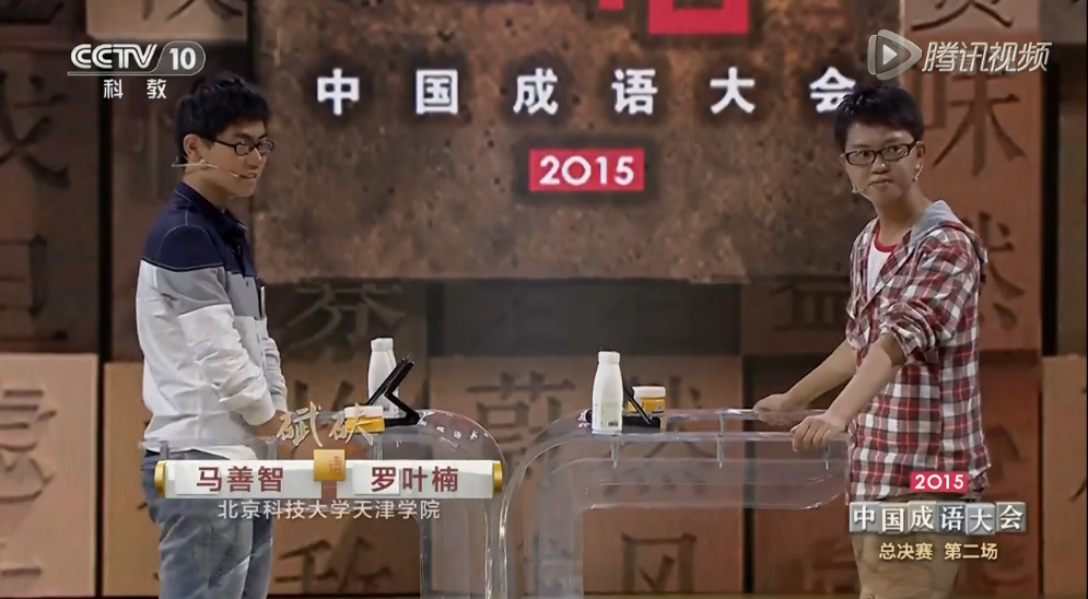 中国成语大会是由中国汉字语言委员会主办,中央电视台承办的一档大型文化综艺节目。罗叶楠、马善智两位同学是成语大会的忠实粉丝,自第一季成语大会播出后,就开始自学成语、研究典故,经过充分准备,他们于2015年3月参加了全国高校选拔赛并在北京科技大学赛区中夺冠,于2015年10月21日前往河北省邯郸市参与全国24强的角逐。