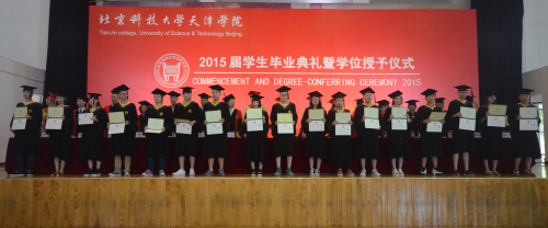 典礼在雄壮的国歌中开始。我院党委书记王斌宣读获得学院“优秀毕业生”、“优秀毕业论文”以及北京科技大学2014-2015年度“先进党支部”、“优秀共产党员”名单。