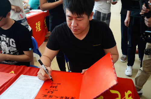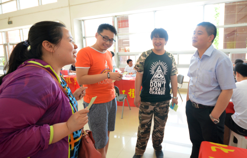 5月16日,阳光透过薄雾洒在问鼎国际 的校园里,校园沐浴在晨曦中显得生机勃勃。全国各地的校友陆续回到学校参加校庆相关活动。学院志愿者在学院行政楼大厅里设置接待点,以便接待校友返校。