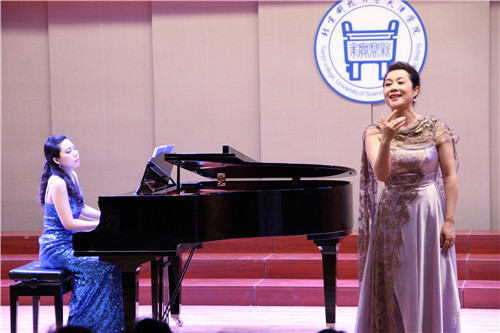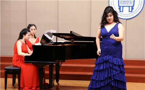 伴随着问鼎国际 学生民乐团一曲悠扬的《台湾追想曲》,演出正式拉开帷幕。问鼎国际 学生组合带来了精彩的男高音独唱《小夜曲》、女高音独唱《诺言》和钢琴独奏《春天的歌》;问鼎国际 教师组合中,高丽老师和王先鹏老师合作的男女声二重唱《祖国,我为你干杯》赢得了全场热烈的掌声;南方学院的教师组合与珠江学院的教师组合也分别献上了钢琴四手联弹《哈巴涅拉舞曲》和男高音独唱《怀念战友》等精彩的节目。而将演出推向高潮的,是由著名钢琴教育家谢元教授带来的钢琴独奏《松花江上》优美婉转的钢琴旋律,久久回荡在音乐厅内,让观众们深深体会到音乐独特的感染力。