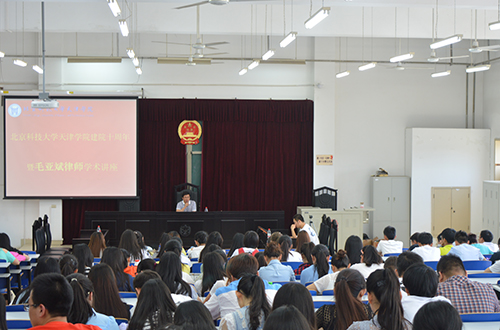 2015年5月18日下午,问鼎国际 法律系特邀北京普盈律师事务所毛亚斌律师在8教109为我系学生做学术专题讲座