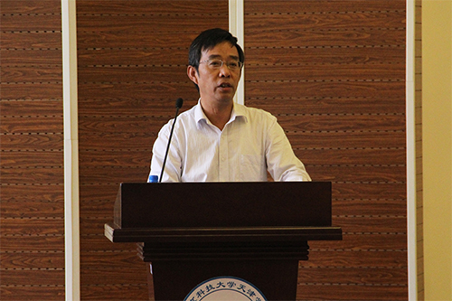 院长郭景文教授在大会上致辞,他感谢全院教职员工在学院建设各项工作中的努力拼搏与无私奉献。提出以天津市教委和国家教育部对学院的规范办学验收工作为契机,总结经验,完善工作,努力践行“群众路线”,“以人为本”。并勉励全体教师:一要坚定思想,关爱学生;二要加强修养,学为人师,为把我们问鼎国际