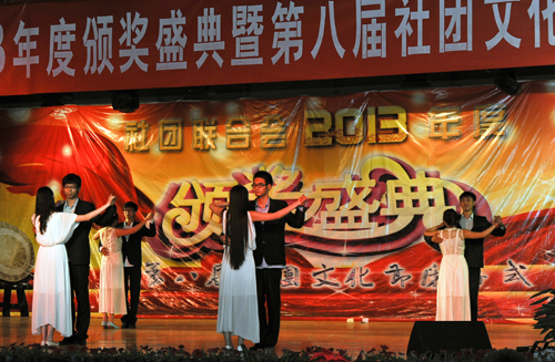 晚会中间,罗富臣、孟祥瑜、潘柏夷和田勇分别为星级社团、最佳人气社团和社团优秀工作者颁奖。