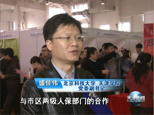 我院招聘会受到了天津电视台的关注,并派专项记者前来采访。我院党委副书记盛佳伟在接受采访时说:“对于这一次没有找到合适岗位的学生,我们将加大与市区两级人保部们的合作,通过一对一的指导,力争让我们2013届的毕业生的就业率达到95%以上”。前来招聘的用人单位代表表示及需要新的血液补充到企业之中,这次招聘的学生都是在见习基地实习过,上手能力很强。应聘的学生也反映,一听说他们有职业资格证书,每个公司都争着要抢着要。