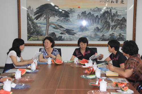 馆长刘淑娥带领各部室主任共四人,对南开大学滨海学院图书馆领导及同仁的到来表示热烈欢迎,并带领他们参观了两馆,详细地介绍了我馆的基本情况、办馆理念、馆舍布局、服务项目等。随后,在理工馆会议室进行了交流,双方针对部门设置、业务流程、资源建设、服务措施、宣传方案、文化建设、支部活动等诸多工作进行了深入探讨,两馆工作人员结合工作实际进行了对口交流。