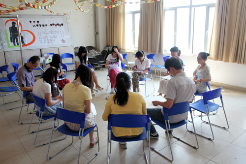 6月14日上午9点心理活动室迎来了土木系、机械系、材料系的辅导员们。首先进行了“鸡窝里飞出了金凤凰”的热身活动,使大家的情绪调动起来,然后大家体验了“压力涂鸦”活动,感受压力带给我们的不同体验,伴随着一曲优美的班德瑞的《春日》,引导大家层层深入地进行了呼吸放松、肌肉放松和想象放松,随后大家结合涂鸦作品分享了有效的减压方法。